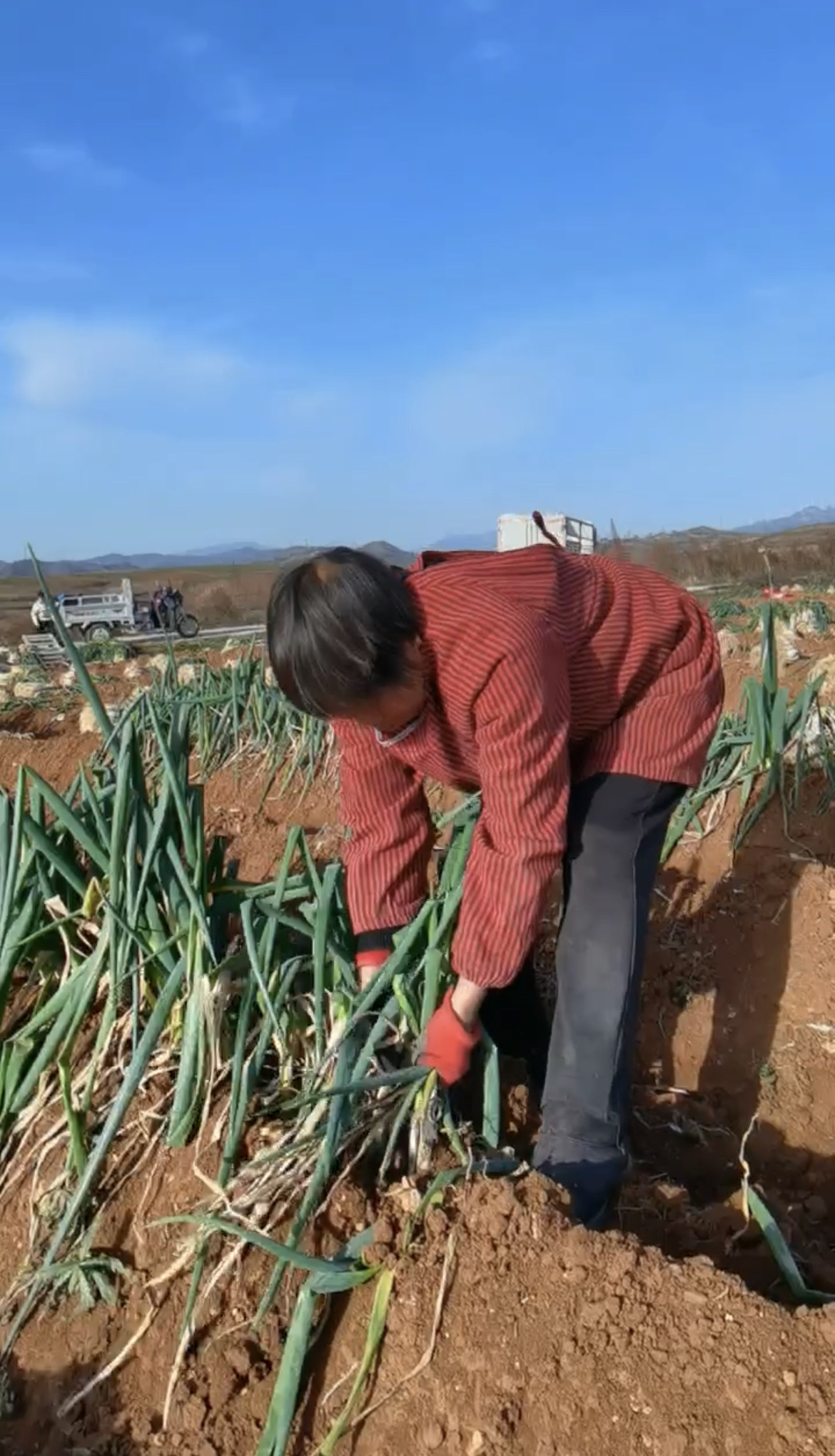 赵霞:朱书记挺高兴的,当时他说他可以送(物流),但是从电话里听出来,感觉运输(方面)有点困难,然后梅总就说我们可以自己派车去地头拖,朱书记也说好!其实后来我才知道,他的大葱实际上遇到的最大的困难就是运输问题,所以我们就派了一辆车去。既然已经去了,我们九米六的货车是可以装载14吨的,就直接买2万斤,也就是10吨,然后稍微放宽松一点。