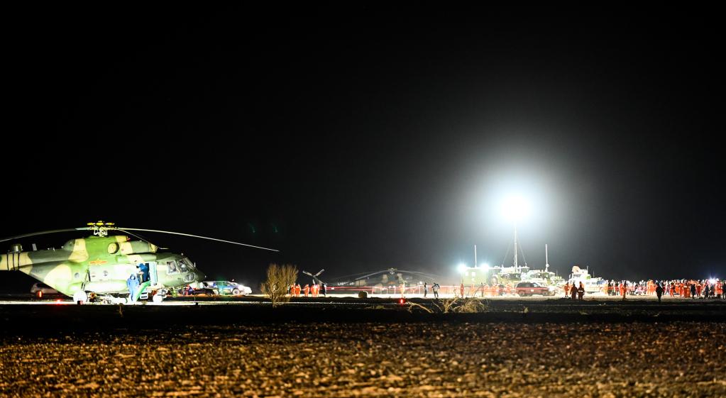 神舟十三号载人飞船返回舱在东风着陆场预定区域成功着陆。(新华社记者连振 摄)