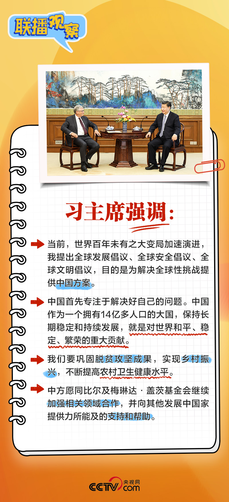 联播+“咱们有三年多没有见面了。你是参与到中国发展事业中,做了很多事情的人,是我们的老朋友。”6月16日,习近平主席在北京钓鱼台国宾馆会见美国比尔及梅琳达·盖茨基金会联席主席比尔·盖茨。