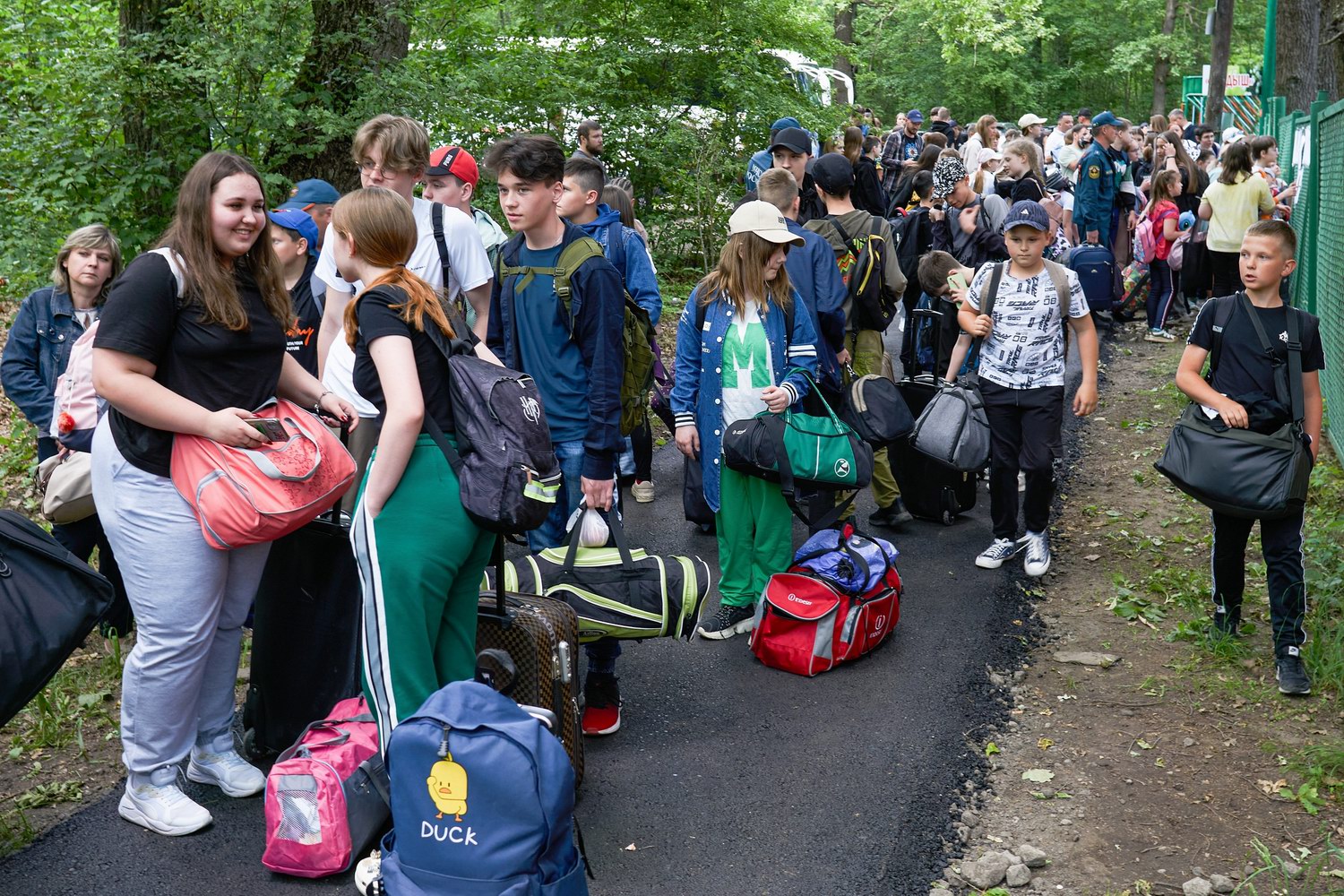 当地时间2023年5月31日,俄罗斯沃罗涅日,来自别尔哥罗德州的儿童抵达Landysh卫生营地临时住宿。由于最近乌克兰的炮击,别尔哥罗德当局将从舍别基诺和Graivoron地区撤离300名儿童。