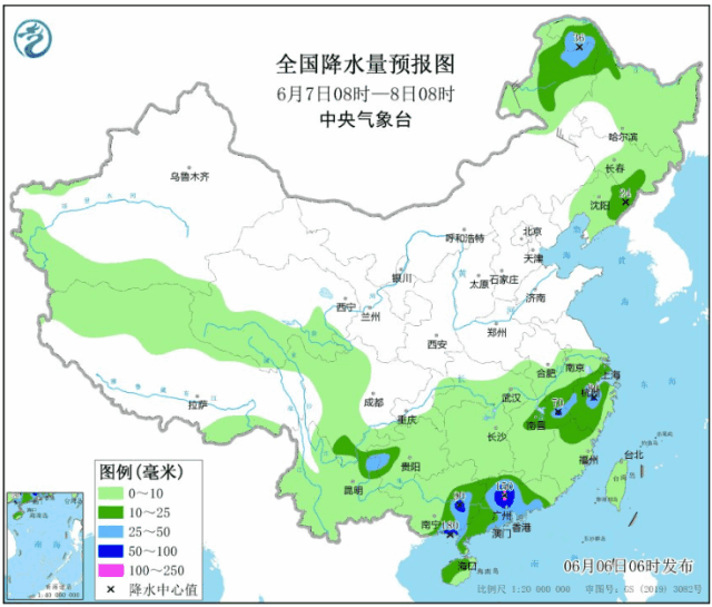 7日:内蒙古东北部、黑龙江西北部、吉林东部、辽宁东部、江淮西部、江南北部和东部、西南地区东部和南部、华南南部等地部分地区有中到大雨,局地有暴雨;其余大部地区为晴到多云天气。