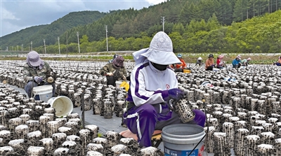 走进大山深处的抚顺市抚顺县后安镇郑家村,圆柱状的菌袋整齐地摆放在田间,肥嘟嘟的黑木耳从菌袋四周的小孔探出头来,农户们穿梭其间采摘、分拣、晾晒,忙碌而有序。
