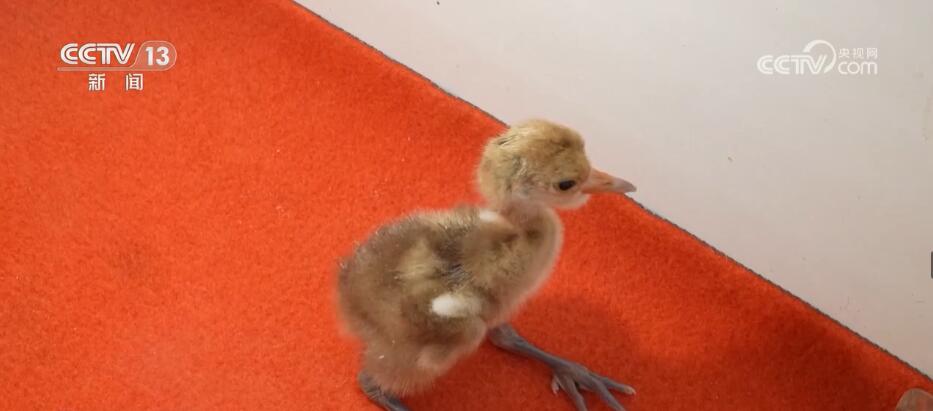 刚出壳的丹顶鹤宝宝浑身毛茸茸,毛色为黄褐色,乍一看像只小鸭子,但嘴巴细尖,双腿较长。由于还不能长时间站立,小鹤宝宝紧紧依偎在保温箱里,萌萌的样子很有趣。目前,这只丹顶鹤宝宝身体状态良好,不久之后就可以自己啄食、喝水了。人工孵育的丹顶鹤宝宝在经历31天的胚胎发育和12至48个小时的破壳过程后,还需要在保温箱里经过5天以上的保育和将近3个月的人工育雏,才能完成整个育雏期。