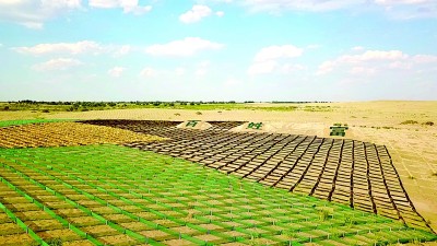 1.“绿进沙退”,坚决阻止两大沙漠合拢