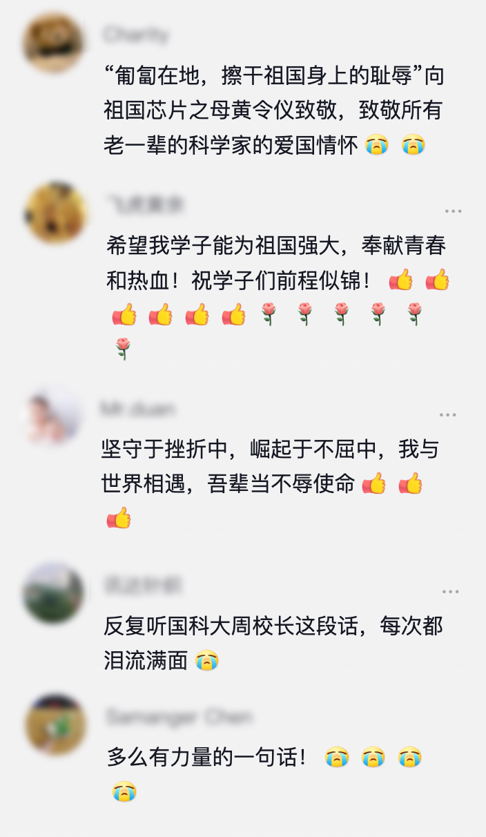 不久刚刚离开我们的微电子所研究员黄令仪老师,为了尽快解决国家芯片“卡脖子”问题,年近八十依然坚守在“龙芯”研发中心。她说,“我这辈子最大的心愿就是匍匐在地,擦干祖国身上的耻辱。”每次想到这句话,我都泪流满面。