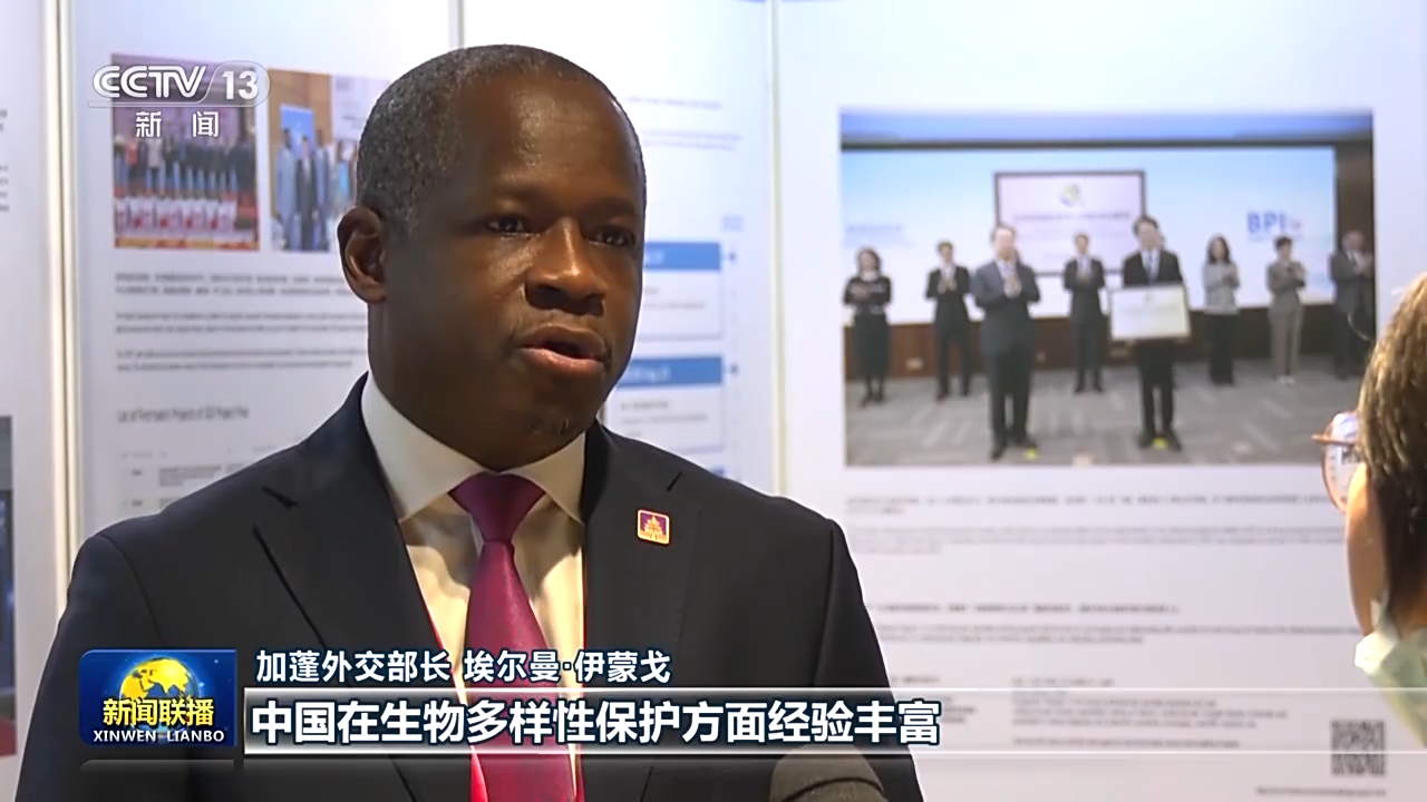加蓬外交部长 埃尔曼·伊蒙戈:中国在生物多样性保护方面经验丰富,我们最近就刚跟中国签署了两项生态合作协议。