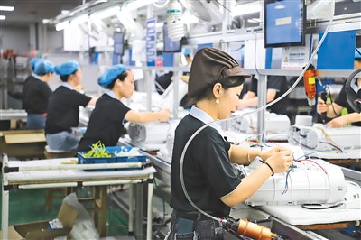 工作人员在鼎安电器有限公司车间组装净水器。新华社记者 张晓洁摄