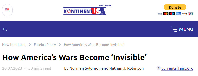 所罗门在新书引言中写道:“方便的沉默和欺骗性信息传递的模式,就像五角大楼的炸弹和导弹一样,是永久战争所必需的,这种模式是如此熟悉,以至于它们看起来很正常,甚至是自然而然的。要启动一个更加民主的进程,就必须拨开迷雾,因为迷雾掩盖了军国主义远在天边近在眼前的实际动态。”