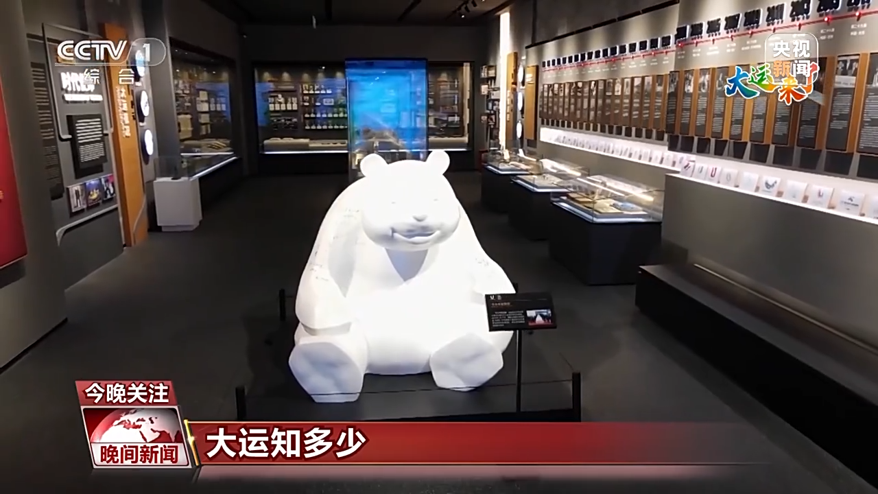 总台记者 蒋林:走进博物馆,首先可以看到一个熊猫雕塑,在2019年1月17日,东安湖体育公园正式奠基的那一天,它就是现场的明星,与会嘉宾在它的身上留下了对成都的祝福。而在今年大运会举办期间,所有来成都参赛的运动员也会受邀来到大运会博物馆,继续在上面签名。签满了所有运动员、教练员名字的这个熊猫,将会成为成都大运会博物馆未来永久的一号藏品。