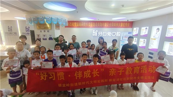为了增强小朋友的爱牙护齿保健意识,从小养成良好的生活习惯,7月20日上午,银盆岭街道铜盆湖社区新时代文明实践站联合牙白兔口腔专门开展了“好习惯·伴成长”亲子教育活动,帮助小朋友们开启神秘的牙齿探索之旅。