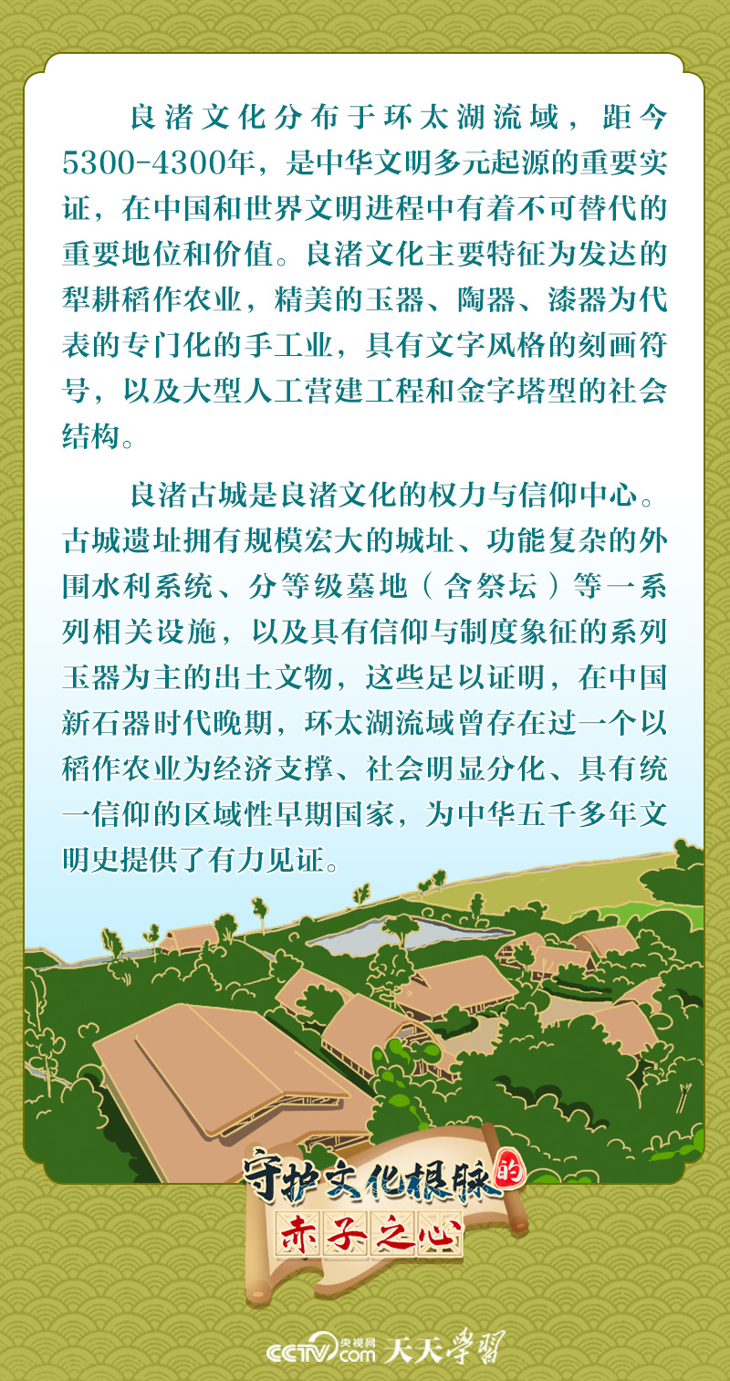 天天学习季夏时节,走进良渚古城遗址公园,千年盛景再现眼前——雄伟的莫角山宫殿区迎接八方来客,绮丽的风光中,远古时期的城池与河流静静地讲述着动人的良渚故事。