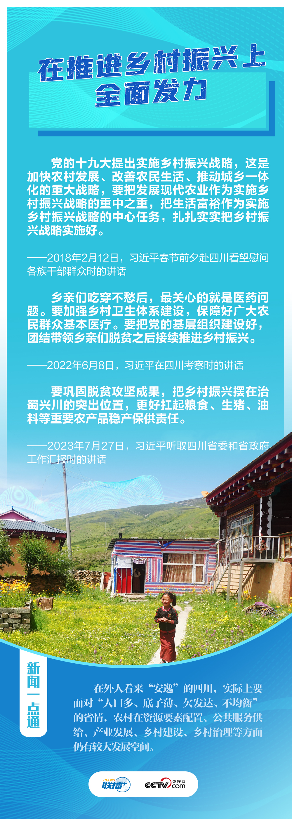 “希望四川在推进科技创新和科技成果转化上同时发力,在建设现代化产业体系上精准发力,在推进乡村振兴上全面发力,在筑牢长江黄河上游生态屏障上持续发力。”7月27日,在巴蜀大地考察的习近平总书记听取四川省委和省政府工作汇报,对四川各项工作提出新寄望。