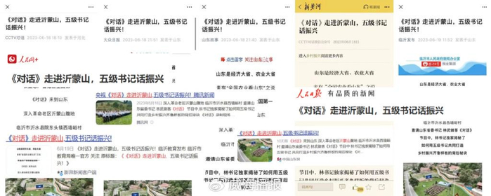 这样的节目也形成了超出预期的话题热度。录制当天,《对话》公众号首发报道后,人民日报等中央媒体,以及来自山东省、市、县等地的200多家媒体同时跟进。节目正式播出前,在各类媒体平台围绕“打造乡村振兴齐鲁样板”话题的稿件和新媒体产品就达55篇,全网总传播量超过3500万,多篇稿件阅读量突破10万次。