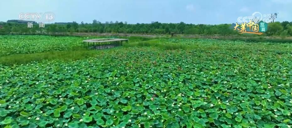 近年来,当地通过土地流转,打造生态缓冲区等举措保护湿地环境。依托这千亩荷塘,当地从全国25省市征集了40多个品种的荷花集中展示,供市民游客欣赏。
