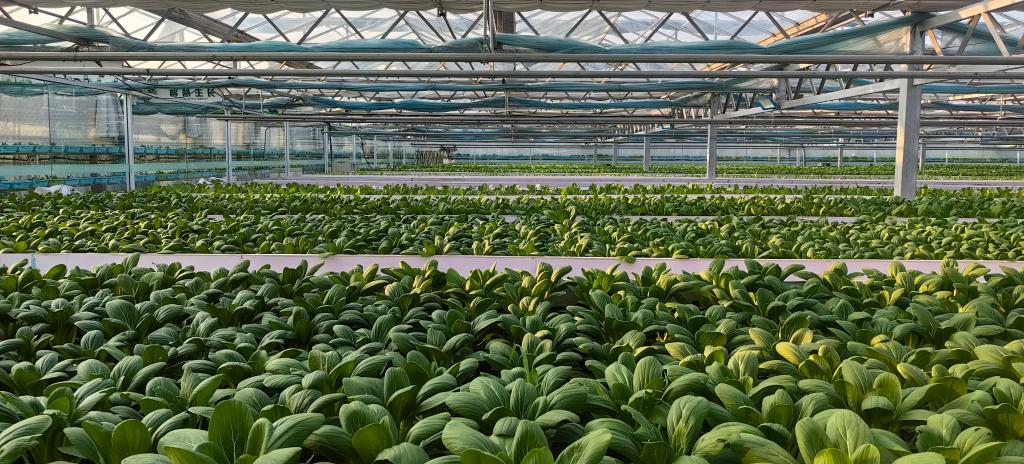 玉泉洼合作社的智能种植床上,蔬菜在旺盛生长。新华社记者 陈国峰 摄