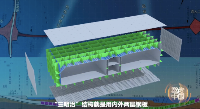 顾名思义,“三明治”结构就是用内外两层钢板造出巨型钢壳,然后在两层钢板的隔舱之间进行混凝土浇筑。
