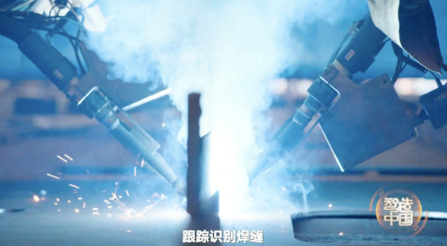 机器人测量钢板尺寸和位置,大脑根据数据迅速发出指令,焊枪上的激光感应器跟踪识别焊缝,实时纠偏。