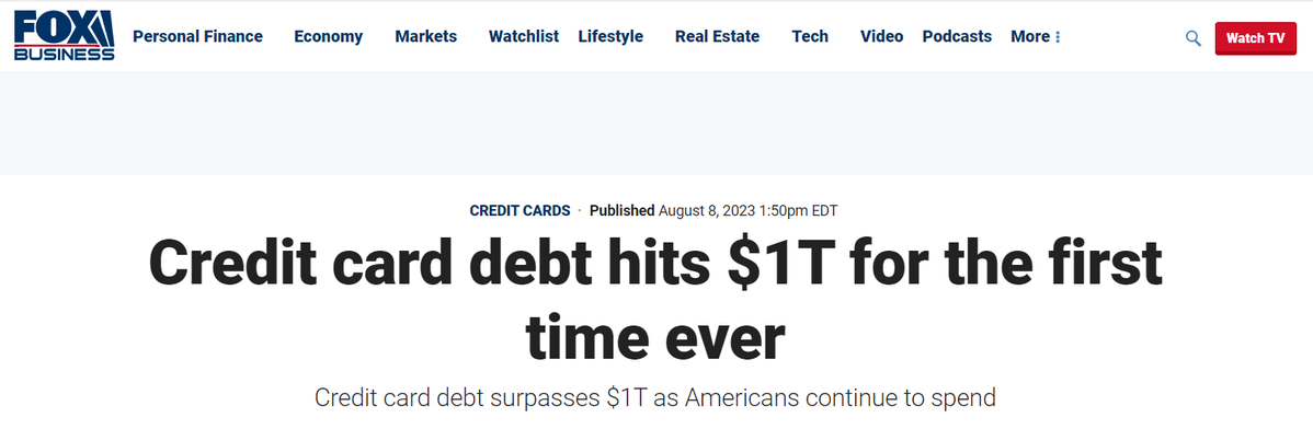纽约联储周二报告称,进入夏季,美国人越来越多地转向使用信用卡来维持生计,总余额首次超过 1 万亿美元。这是自 2003 年以来美联储数据有记录以来的最高水平。