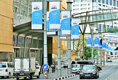 这是8月17日在南非约翰内斯堡拍摄的金砖峰会条幅。新华社发