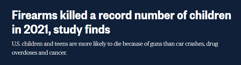 分析显示,从2018年到2021年,美国儿童死于枪支的比例增加了近42%。研究人员曾经预计,在2020年儿童涉枪死亡人数急剧上升之后,2021年会有所下降,但这一预测并没有成为现实。据报道,2021年美国与枪支有关的儿童死亡人数较2020年上涨了近9%。