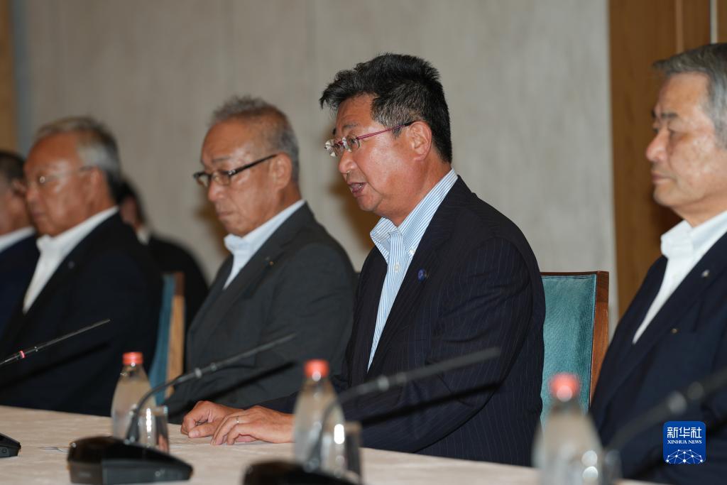 8月21日,在日本东京首相官邸,日本全国渔业协会联合会会长坂本雅信(右二)在与日本首相岸田文雄会见时发言。新华社记者 张笑宇 摄