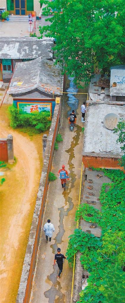 ◀8月6日,来自中国国际救援中心广东、河南、四川的应急消杀队员,正在河北省涿州市沿家村消杀,预防疾病发生。李 谏摄(中经视觉)