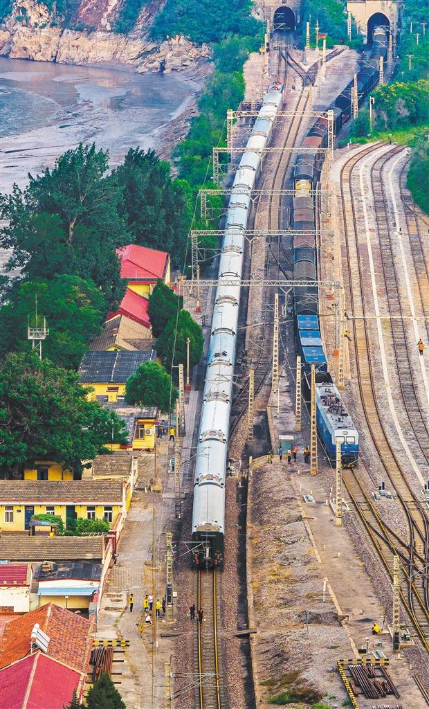 ▶8月5日,国铁北京铁路局北京西工务段,工作人员在北京市门头沟王平镇落坡岭站对K396次列车组织检修。张武军摄(中经视觉)