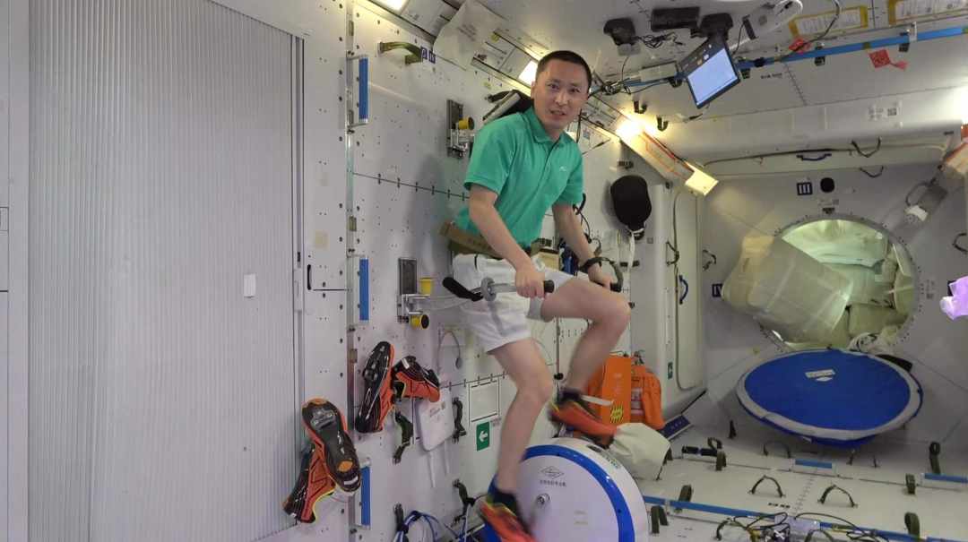 运动员在来信中好奇航天员们在失重环境中如何运动健身。航天员朱杨柱说“体育锻炼是航天员的一项任务”,还特别介绍了中国空间站里的“健身房”。三位航天员饶有兴致地锻炼了起来。