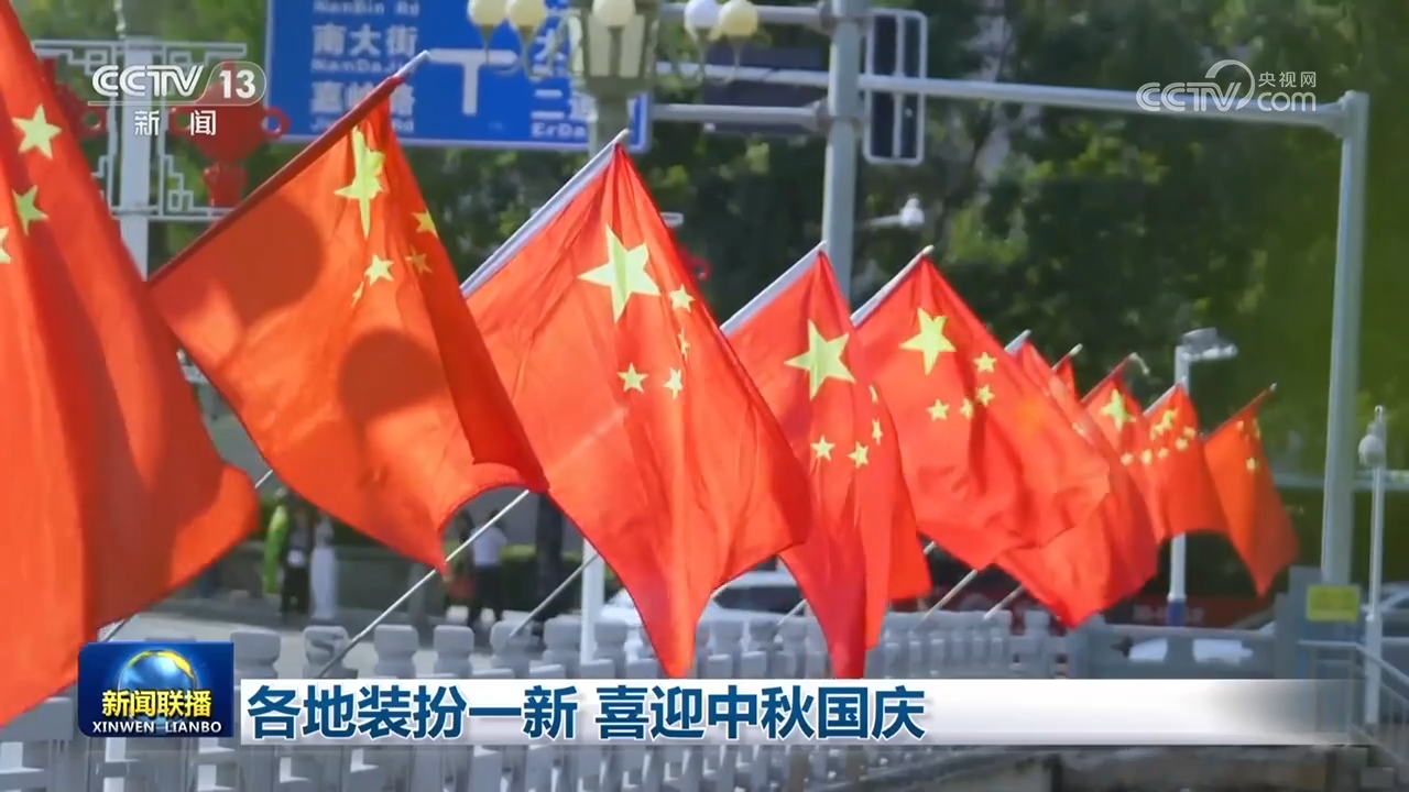 中秋国庆双节临近,全国各地一片喜气祥和。在陕西延安,红旗在城市街头飘扬,宝塔山等革命旧址熠熠生辉。在湖北武汉、广西南宁城市主干道的“中国红”,洋溢着热烈喜庆氛围。