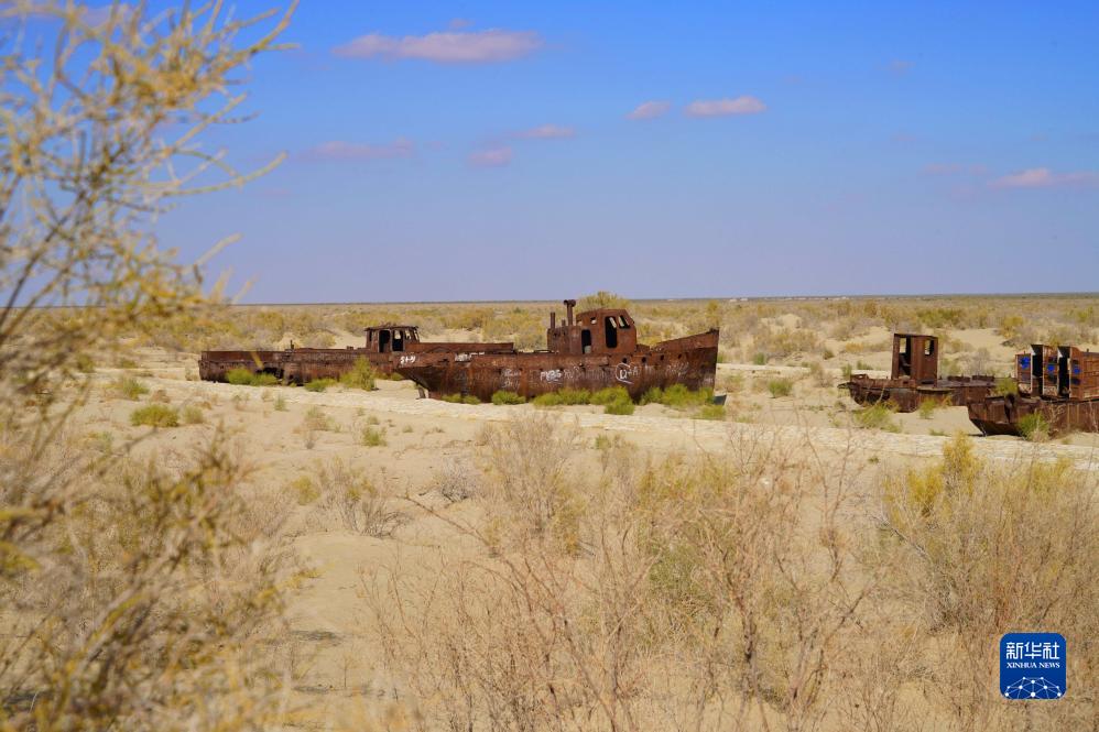 这是2021年9月29日在乌兹别克斯坦穆伊纳克拍摄的搁浅在咸海的废弃船只。新华社发(扎法尔摄)