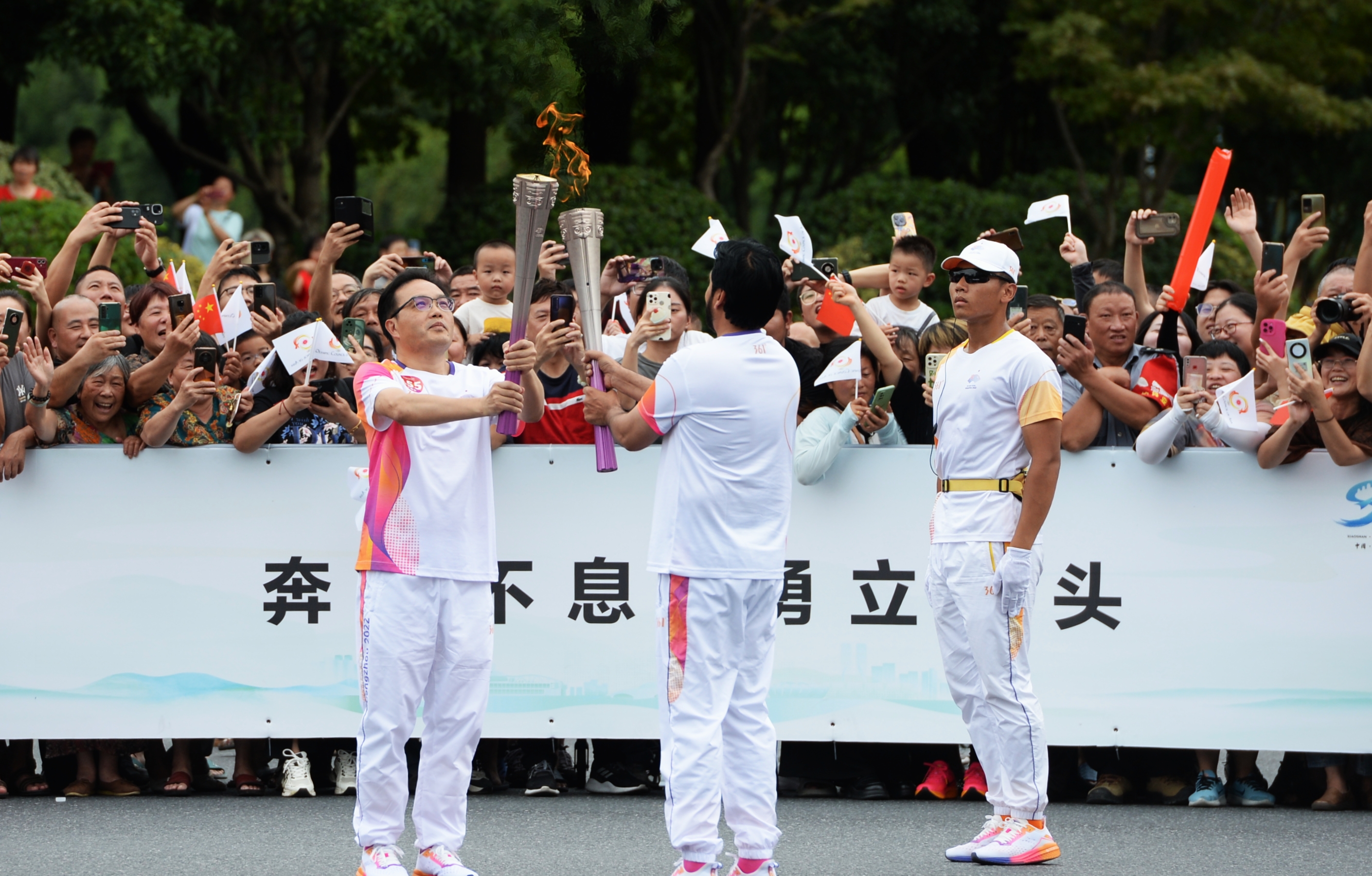 20日的火炬传递起跑仪式在杭州城市阳台举行。浙江省副省长、杭州第19届亚运会火炬传递指挥中心指挥长胡伟点燃火种盆,浙江省委常委、杭州市委书记、杭州第19届亚运会组委会副主席刘捷点燃杭州亚运会火炬“薪火”,交给本站第一棒火炬手陈雨菲,随后火炬传递来到物联网小镇、奥体中心、杭州国际博览中心,由203棒火炬手共同完成火炬传递。