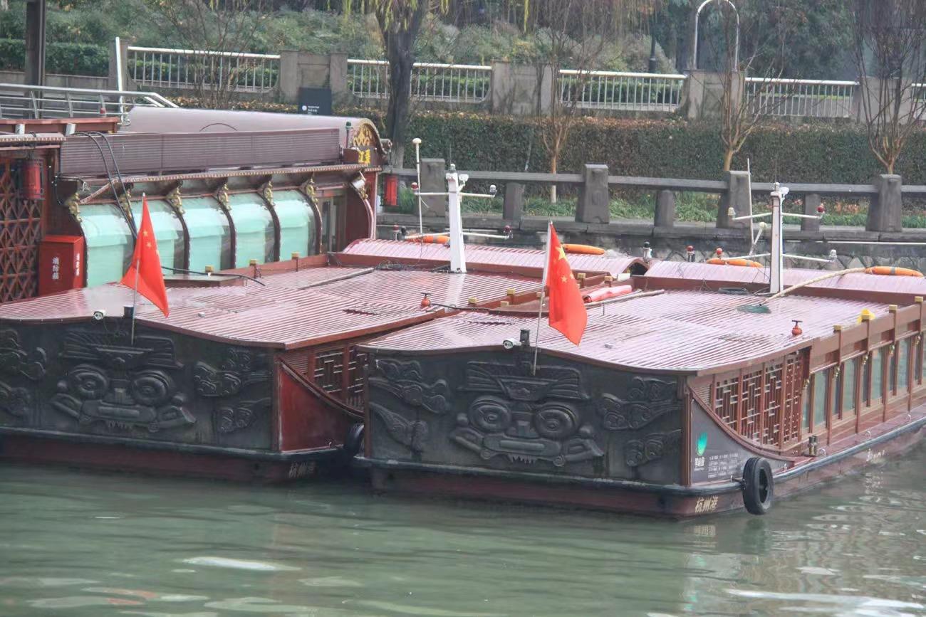 △坐标:京杭大运河杭州武林门码头停靠的游船