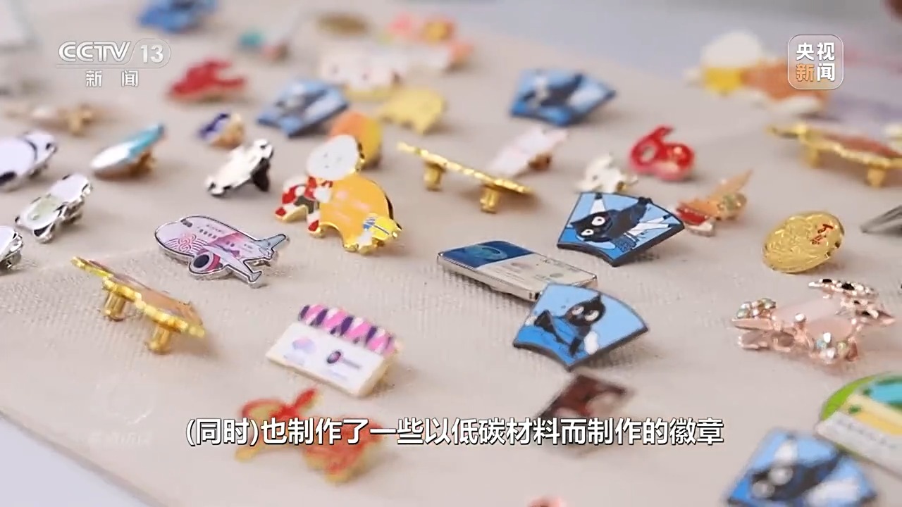 亚运村工作人员 吴轶涵:徽章交换中心建筑本身就是以低碳的材料制作而成的,同时也制作了低碳材料而制作的徽章,这些徽章给运动员交换使用。所以每次在这里完成一次徽章交换其实就是主动进行了一次低碳理念的倡导。