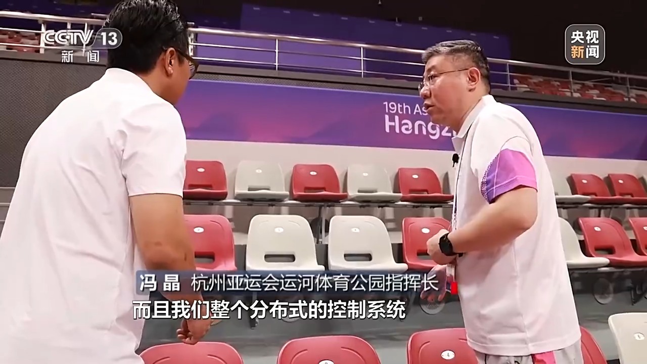 杭州亚运会运河体育公园指挥长 冯晶:因为乒乓球项目对风速严格要求,我们的空调吹风口在每个座位下方,而且空调出风的速度控制在0.2米/秒,这样不仅可以控制整个风速,而且整个是分布式系统,可以实现节能。这片区域如果没有观众,那么这片区域空调可以不启用,这样的话实现节能目的。