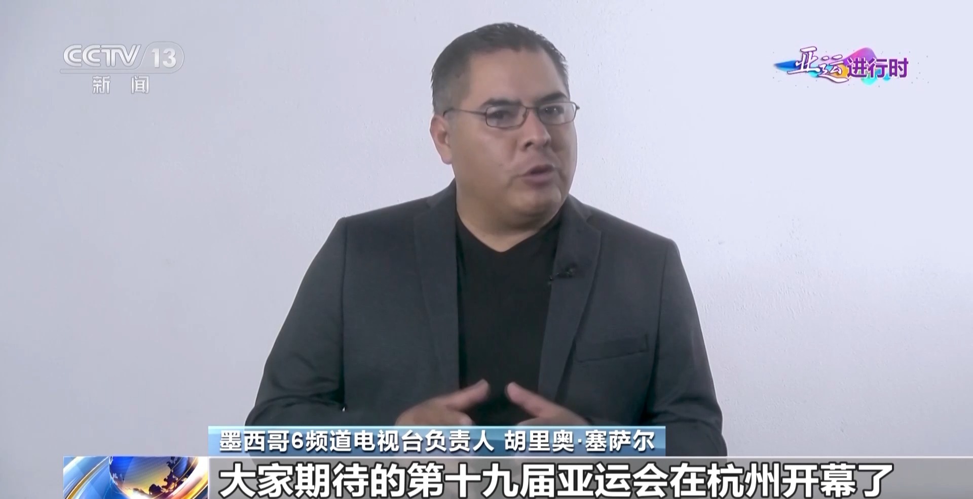 墨西哥6频道电视台负责人 胡里奥·塞萨尔:大家期待的第十九届亚运会在杭州开幕了,开幕式包括了实景和虚拟现实表演,包括数字烟花,增强虚拟现实,还有创新的火炬传递(数字点火)都让人印象深刻,高科技和新技术的应用也将成为此次亚运会的亮点。