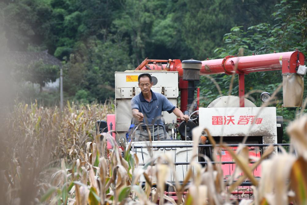 9月22日,在四川省三台县,一名农民正在使用收割机作业。新华社记者高健钧 摄