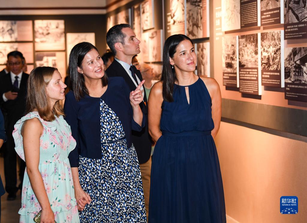 在中国重庆史迪威博物馆举行的约瑟夫·史迪威将军诞辰140周年纪念活动上,嘉宾参观史迪威将军生平图片展(2023年8月8日摄)。 新华社记者 王全超 摄