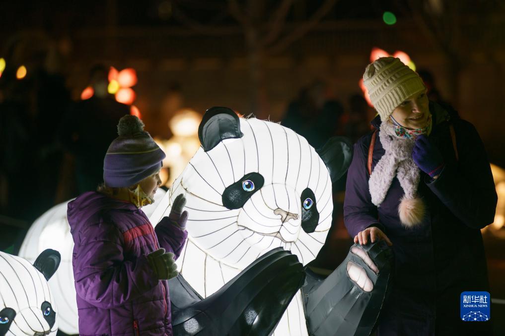 观众在美国华盛顿的肯尼迪表演艺术中心参观农历新年彩灯展览(2022年1月29日摄)。 新华社发(沈霆 摄)