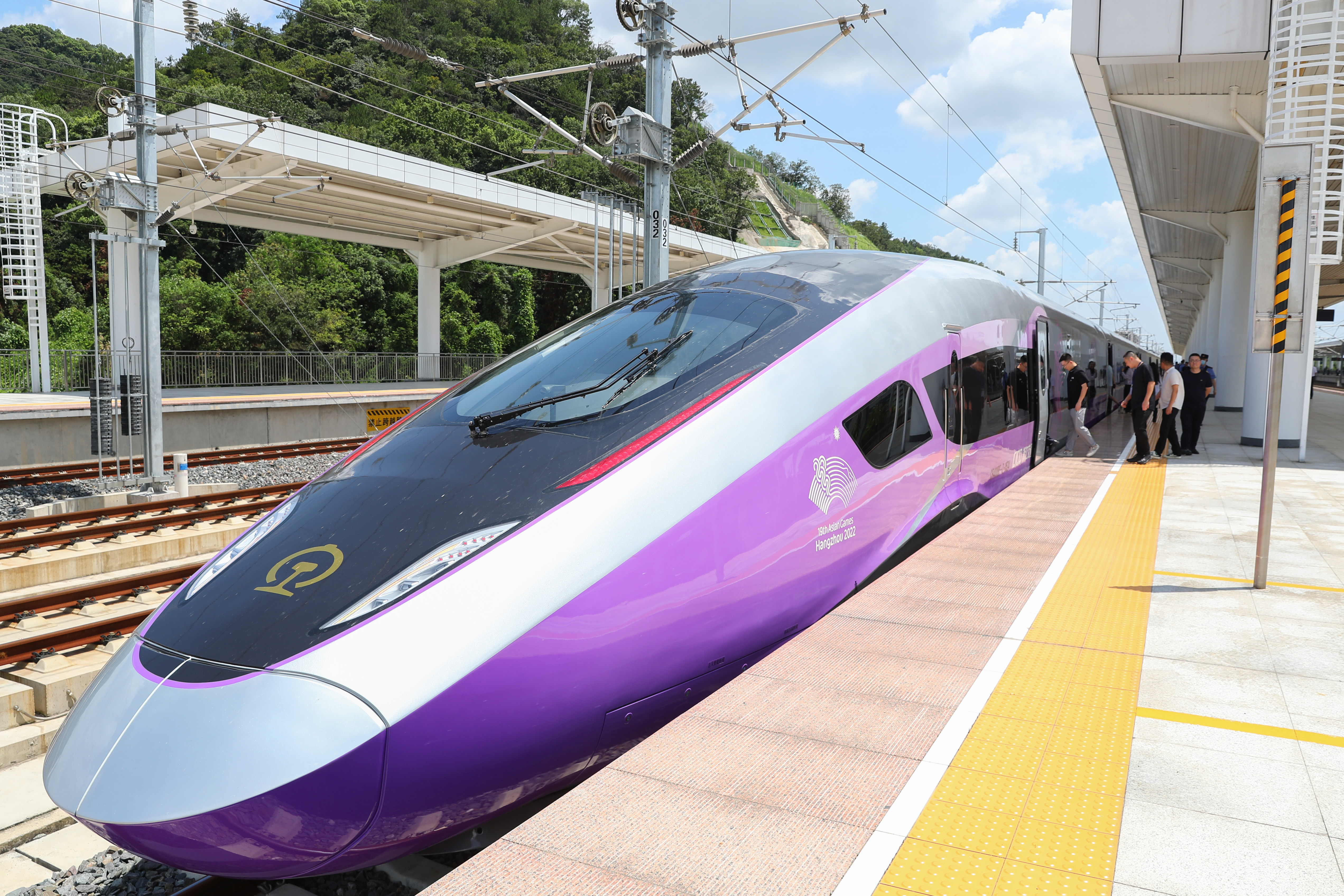 8月4日,乘客在高铁德清站搭乘复兴号亚运智能动车组列车。新华社发(蔡俊摄)