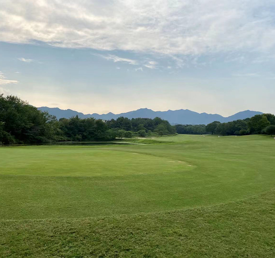 记者又来到位于青山间的西湖国际高尔夫球场。乘着球车进入球场,喷灌设施正在浇灌草地,记者第一站来到果岭区。
