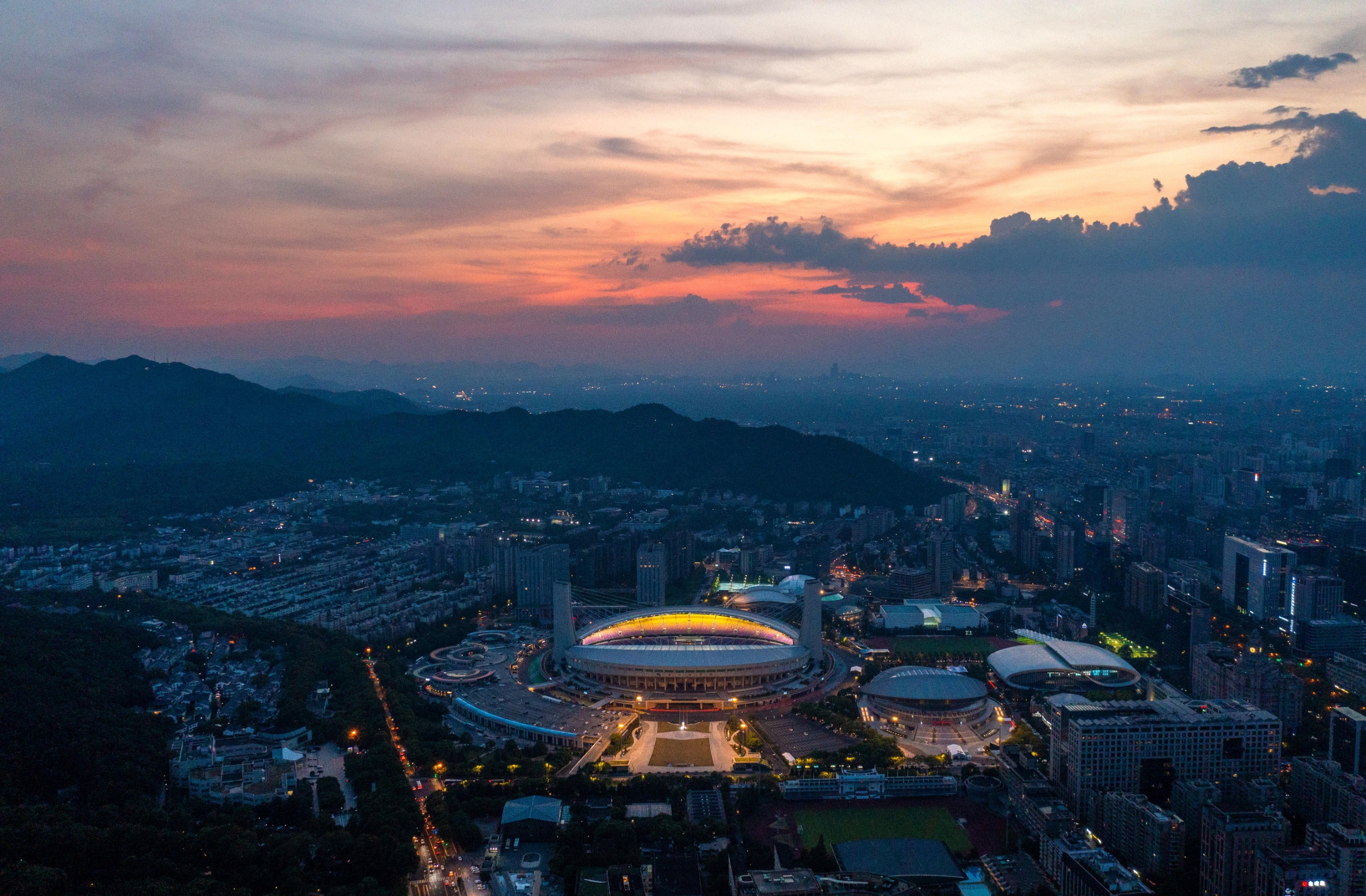 黄龙体育中心亚运场馆群(2023年8月21日摄,无人机照片)。新华社记者黄宗治摄