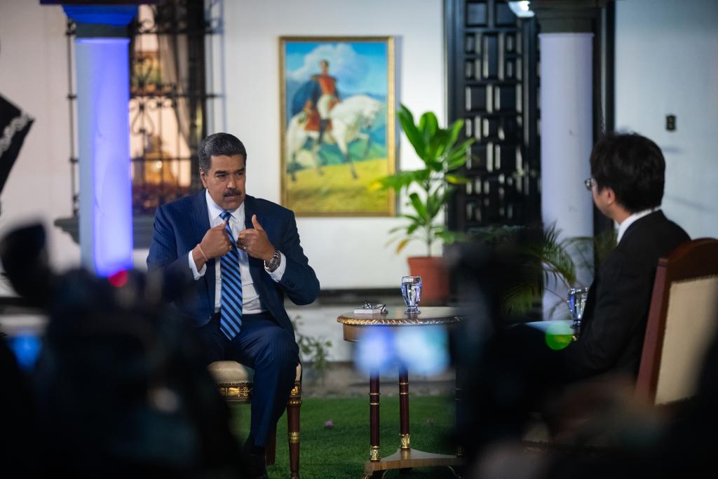 9月5日,委内瑞拉总统马杜罗在委内瑞拉首都加拉加斯接受新华社记者专访。新华社发(萨尔戈多摄)