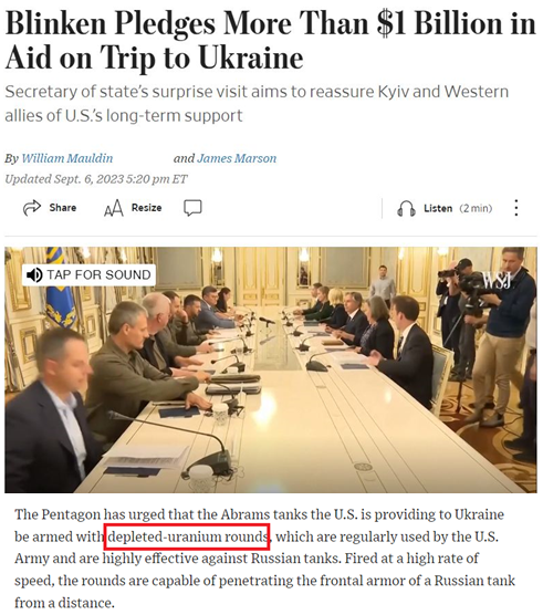 《华尔街日报》:布林肯在访问时承诺,再向乌克兰提供超过10亿美元的额外援助,其中包括备受争议的贫铀弹。