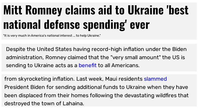 尽管在拜登执政期间,美国的通胀率创下了历史新高,但罗姆尼却声称,美国向乌克兰提供的“非常少量”的援助“对所有美国人都有好处”,对于这种奇谈怪论,至少遭遇大火灾难的夏威夷毛伊岛居民不会买账。