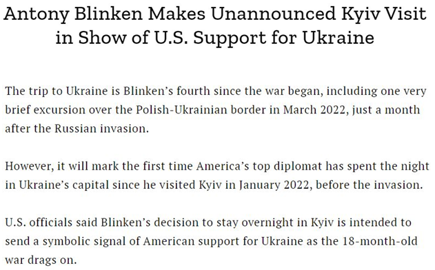 美国国务卿布林肯近日到访基辅,是乌克兰危机全面升级以来其第四次对乌克兰进行访问。