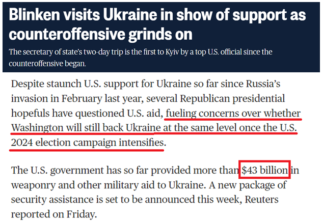 要知道,拜登政府向乌克兰提供巨额军事援助的同时,在国内经济治理方面遭到共和党强力抨击,而援乌问题正是共和党人抓住的拜登政府的“小辫子”。