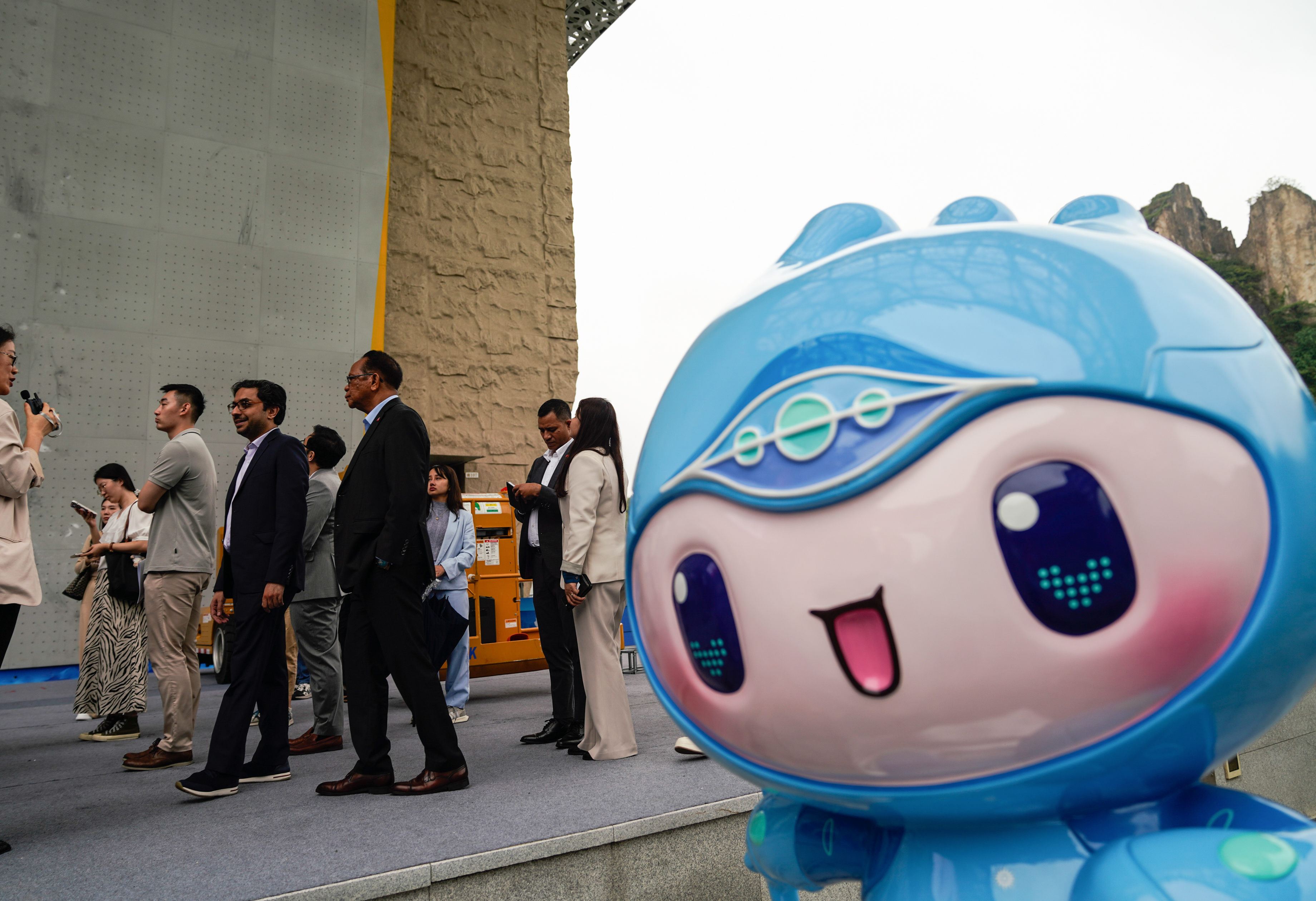 绍兴柯桥羊山攀岩中心是使节们参访的第一处亚运场馆。形似“蚕茧”的半开放式场馆东西通透,人造岩壁赛道和羊山石城的自然风光相映成趣,让使节们赞叹连连。