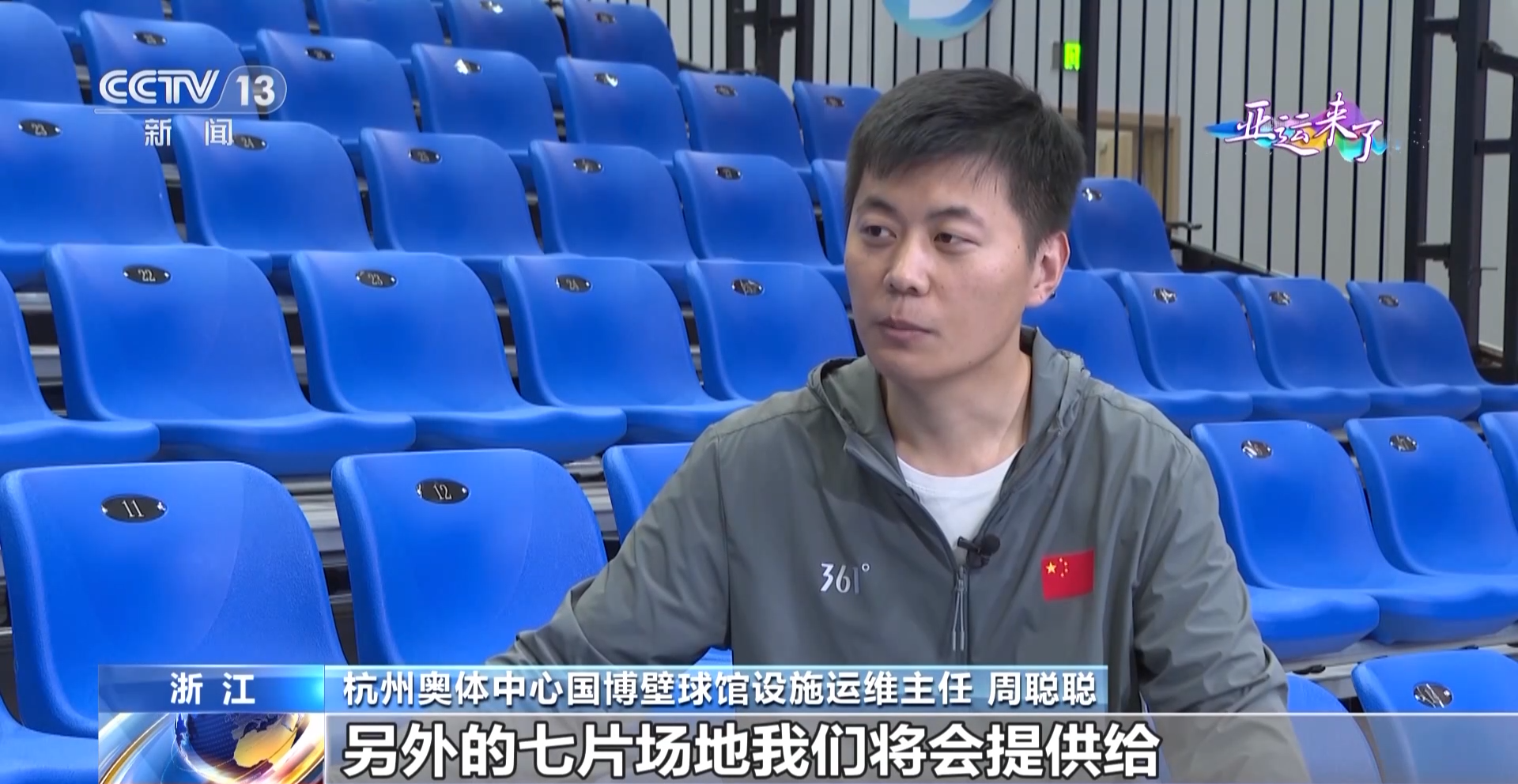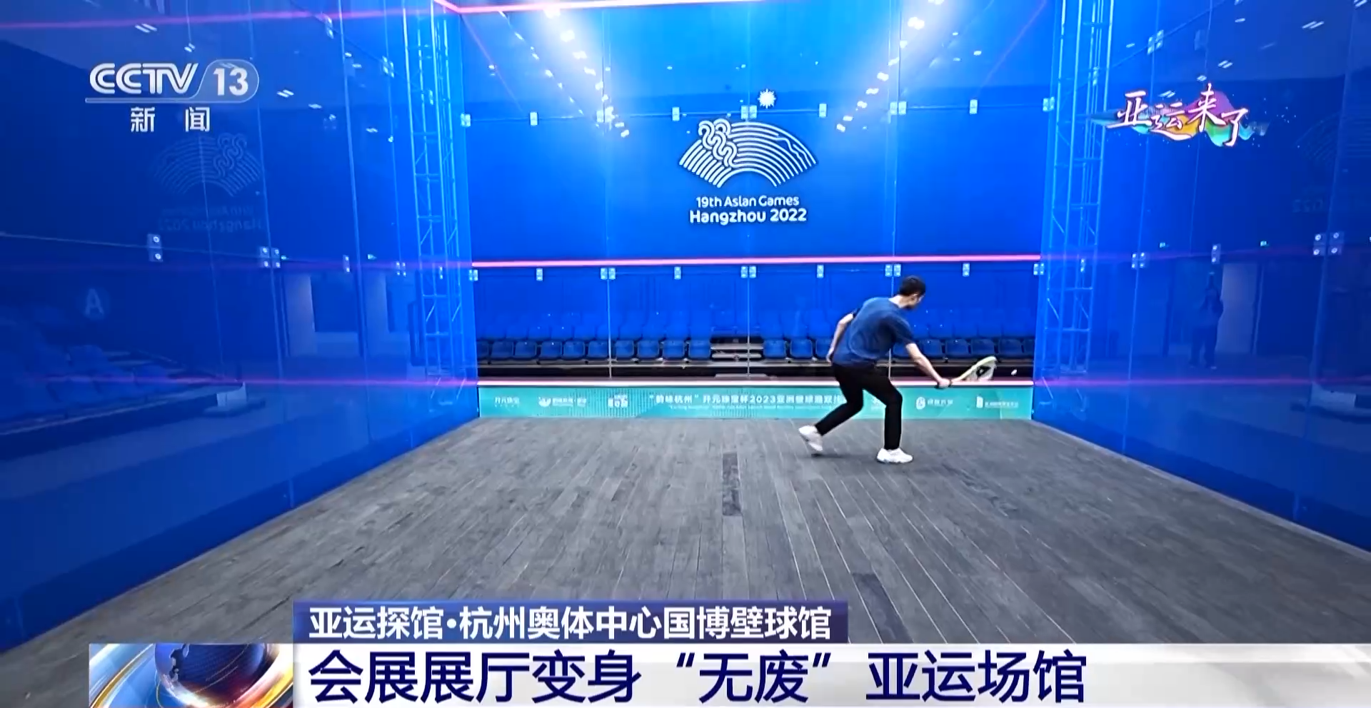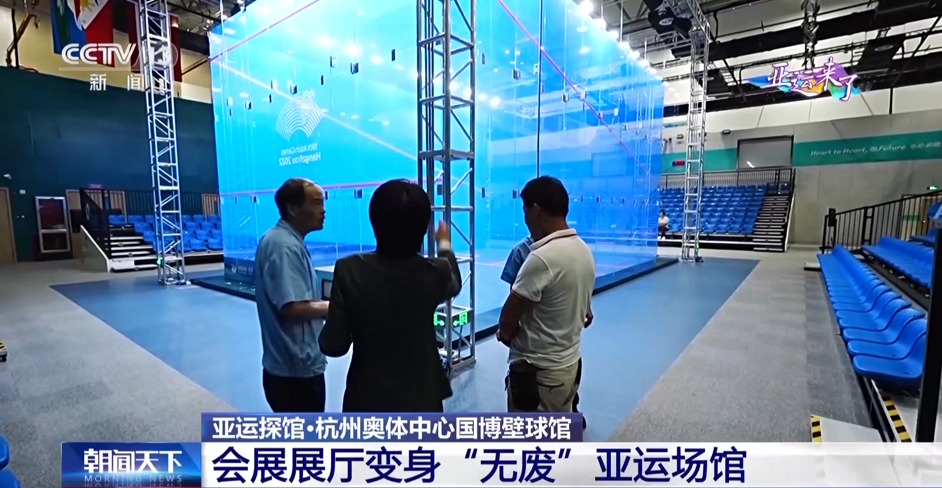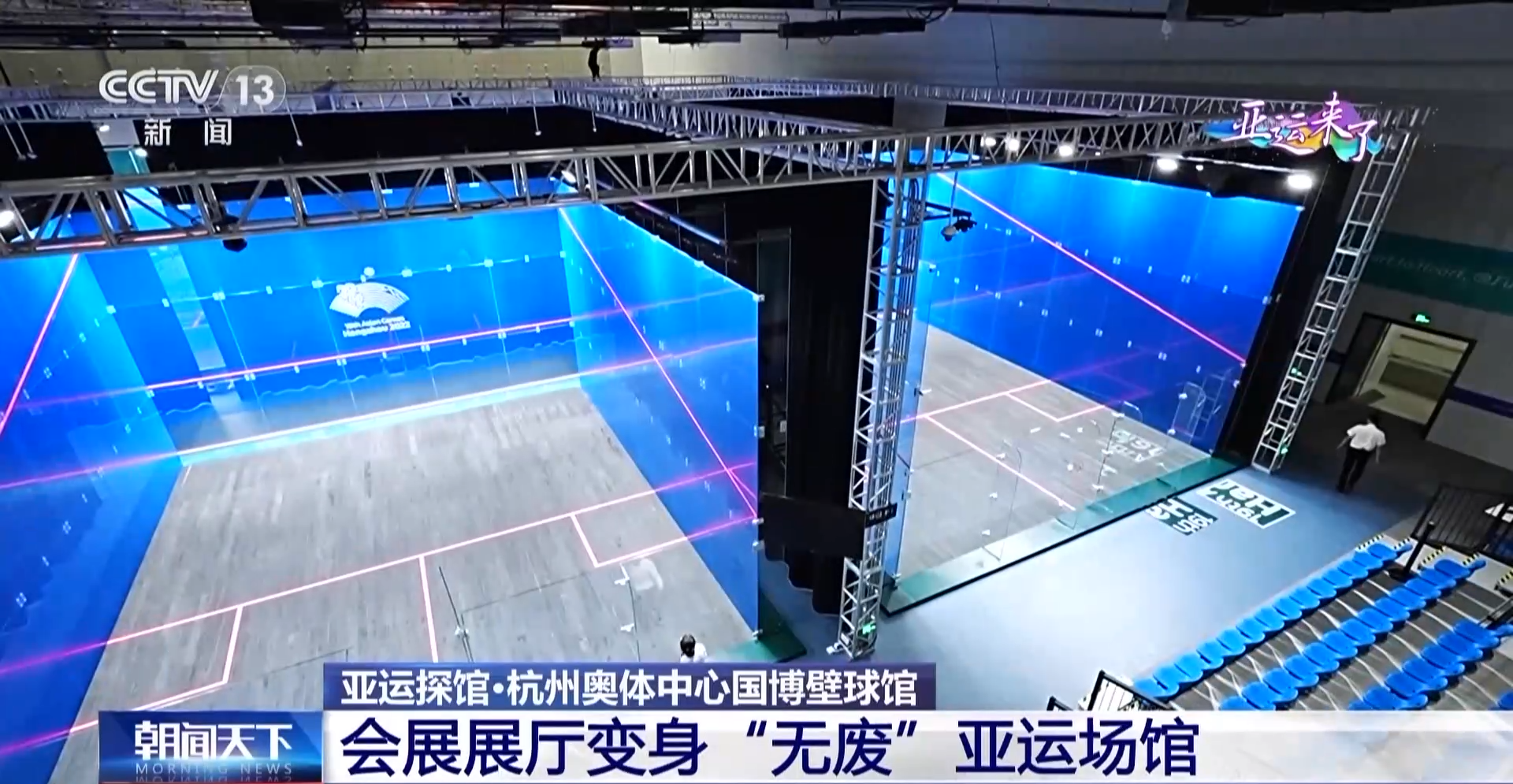杭州奥体中心国博壁球馆设施运维主任 周聪聪:我们这个是一个临建型的场馆,这些座椅都可以用于其他场馆的安装使用,像这个壁球馆的场地,其中有一片将会送给亚运会的博物馆,另外的七片场地,我们将会提供给社区、学校、教育机构,继续为推广壁球运动持续发挥作用。