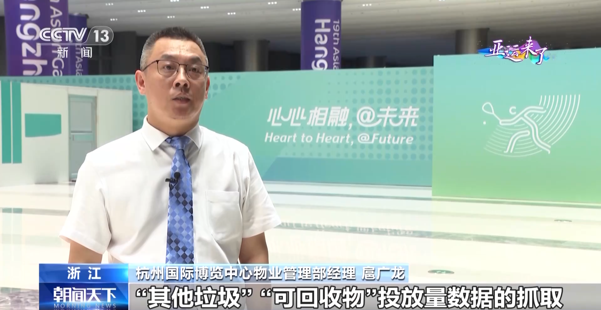 杭州国际博览中心物业管理部经理 扈广龙:我们现在实现了“其他垃圾”“可回收物”投放量数据的抓取。抓取之后,我们可以对前一天的数据进行比对,如果发生大的波动,这就意味着我们有垃圾分类不到位的地方,我们要及时采取其他的管理手段来增加垃圾分类的分拣率,提高可回收物的利用率,从而达到“无废”的目标。