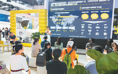 安永展区工作人员向观众讲解业务和产品情况。